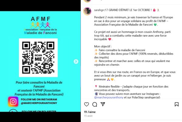– Favoriser la recherche sur la maladie de Fanconi, tant fondamentale que clinique car l’espoir pour tous repose sur les progrès de la recherche.